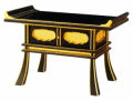 黒塗りのフチ部分に金箔をあしらった経机です。