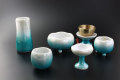 モダン仏具セット ほのか九谷焼銀彩 5点セット&おりん グリーン  中 (家具調仏具)