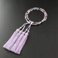 紫やブルーの様々な色彩を持つ美しいフローライト(蛍石)を使用した、八宗のご宗派すべてで使える女性用のお念珠です。 色彩のグラデーションが上品で神秘的な魅力を放つフローライトは、ストレスや心の疲れを癒し、想像力を刺激すると言われ、また、迷った時や落ち込んだ時に、解決方法へ導いてくれるとも言われています。 房は石と藤色の正絹頭房で上品に仕立てました。
