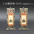 手表装で仕上げているため掛軸の反りは少なく、さらに金メッキの金具で四隅が装飾された、たいへん豪華で華やかな仕上がりの逸品です。