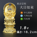 真言宗のご本尊である大日如来です。樹脂成型の仏像の表面に金箔の加工を施した仏像です。鮮やかな色彩と光り輝く光沢が仏壇の中を華やかに引き立てます。