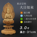 仏像 白檀 八角台座 大日如来 二重火炎光背 金泥書 3寸