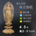 仏像 白檀 八角台座 舟立弥陀 飛天 金泥書 4.5寸