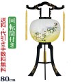 和紙張りの火袋には菊にリンドウの花が大きく描かれ、骨組みには2色の蒔絵が施されています。 電気をつけると温められた空気で回転がくるくると回転し、絵模様が美しく浮かびあがります。 ゆらめく灯りでご先祖様をお迎え下さい。 |