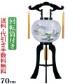 和紙張りの火袋には芙蓉の花と山水の絵柄が印刷された オーソドックスな提灯です。 完成された回転筒が入っていますので組み立ても簡単です。 回転灯のゆらめく灯りでご先祖様をお迎え下さい。 |
