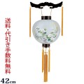桜の落ち着いた色目の木目が美しい提灯です。和紙張りの火袋には芙蓉の花が職人の手でひとつひとつ描かれた、やさしい雰囲気の提灯です。 |