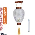 銘木 ケヤキ材を使った美しい提灯です。 火袋は絹と和紙の二重張りになっており、内側に山水、外側には桔梗などの草花が職人の手により一点一点描かれています。二重張りは、灯りをつけると奥行きが感じられる風情のある提灯です。 また、新型のLED電池灯付きですので、長寿命で熱を持たず、安全にお使いいただけます。 スイッチは軽く押すだけで、ON,OFFを切り替えられるプッシュ式を採用。電源の心配もなく、コードもないのですっきり飾れます。 ローソク色LEDですので、ほのぼのとしたあたたかい灯りです。 安全にやさしい灯りでお盆をお迎えください。 |
