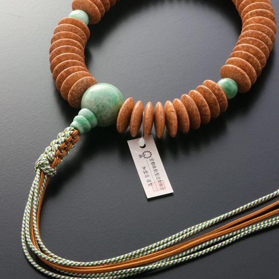 【数珠袋付き】【送料無料】 数珠 念珠 天竺菩提樹平玉 翡翠仕立て 男性用数珠 ひも房
