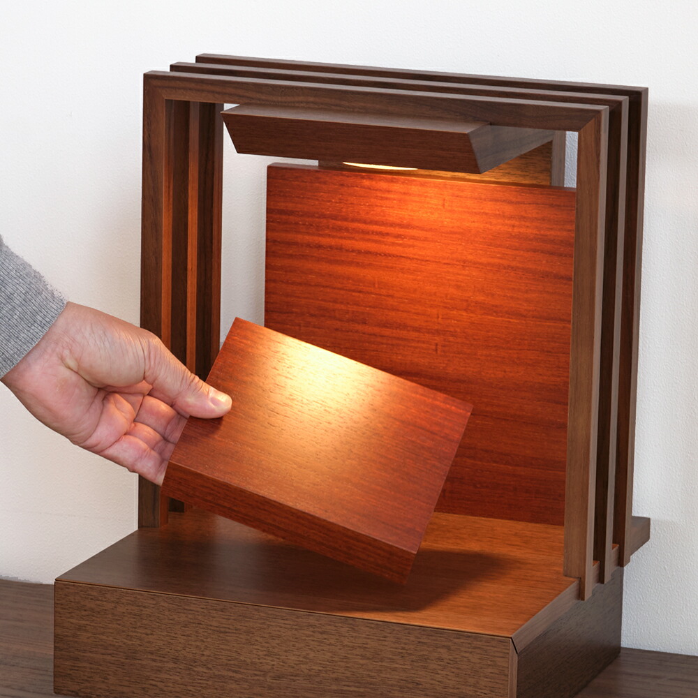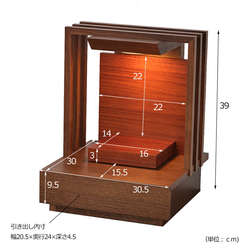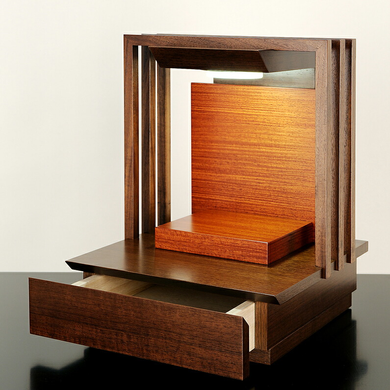 仏具セット付き ミニ仏壇 ステージ仏壇 夢 13号 (仏具付き) 【保証付き】 LED 国産 日本製 ウォールナット パーソナル壇 結 仏壇 オープン 手元供養 おしゃれ コンパクト